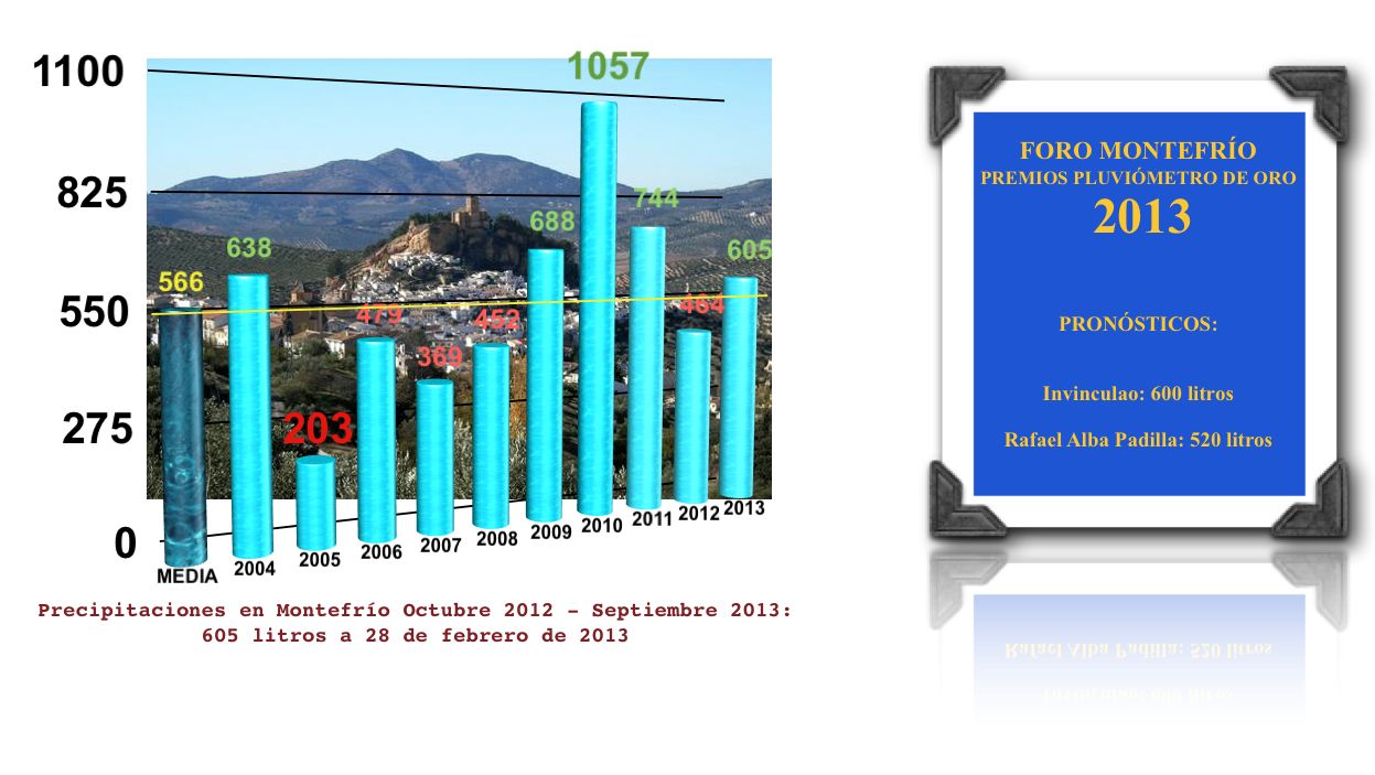 Afortunadamente nos hemos quedado cortos, actualizamos gráfico: van 605 litros caídos en Montefrío a 28 de febrero de 2013.