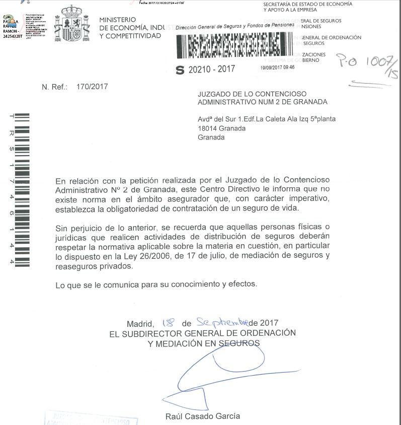 La Direcci贸n General de Seguros certifica que no hay obligaci贸n de comprarle seguros de vida a nadie: