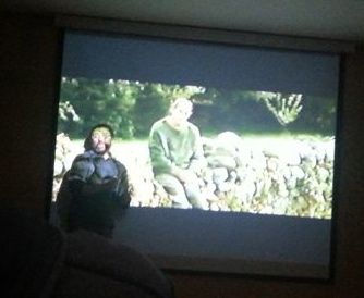 - Ramón se despide de su sobrino Javier (Tamar Novas), de su hermana Manuela (Mabel Rivera), y de su hermano José (Celso Bugallo). Toda la película, salvo el comienzo, filmada pobremente sin dominar la escala de planos, todo en plano medio y plano corto, dando igual que sea importante o no lo que se está contando. El abrazo filmado en varios planos, cuando lo correcto es, como lo de una persona = un voto: una acción, un beso, un abrazo = un plano.  Uno de los pocos planos que sí es acertado; el hermano no está de acuerdo con lo que se va a hacer, y la moda de contar eso a través de las imágenes en la despedida, es separarlo del grupo, y ponerlo aislado, en el muro, observando desde la distancia al resto de la familia, que sí está de acuerdo con lo que se va a hacer.